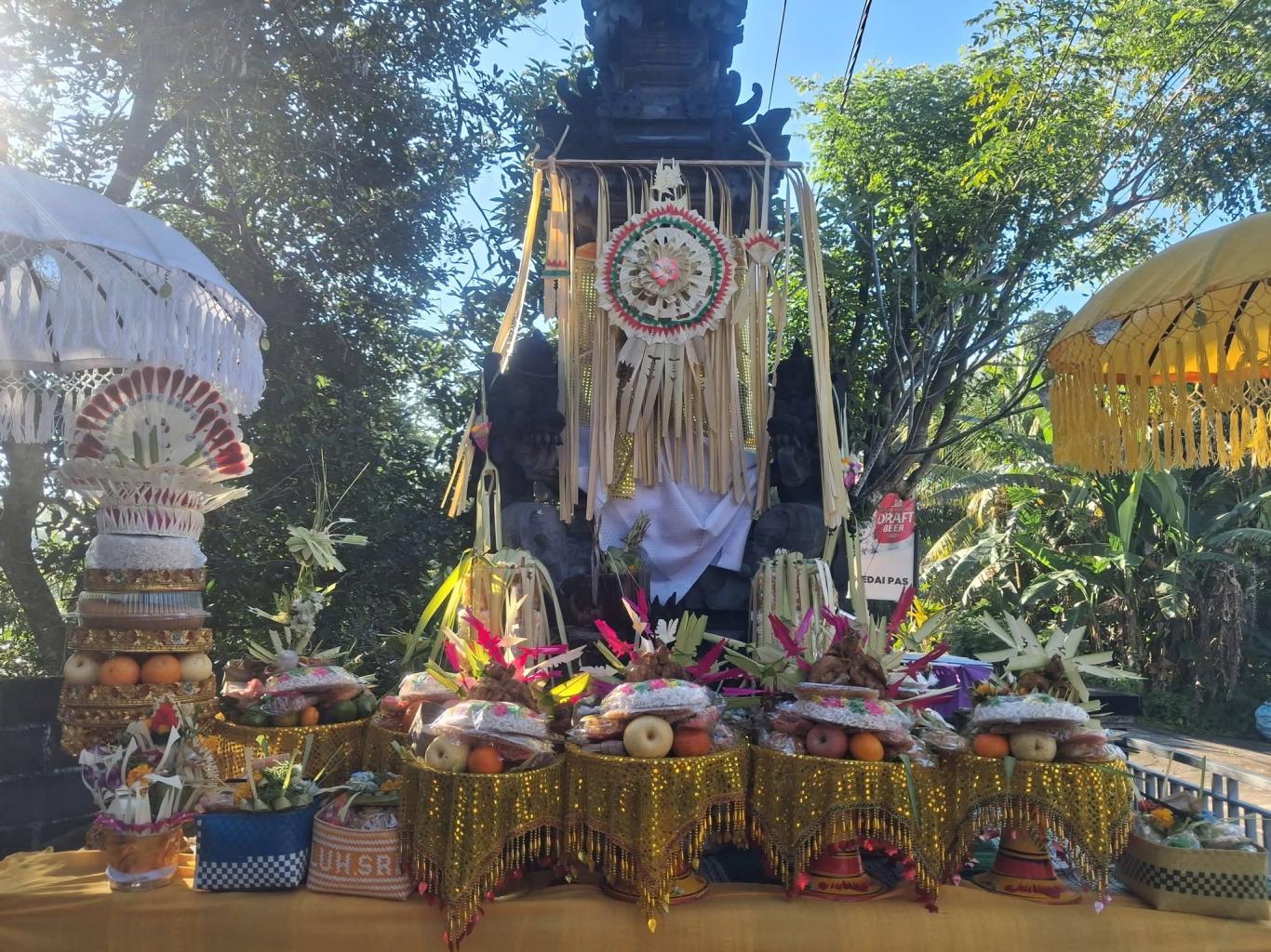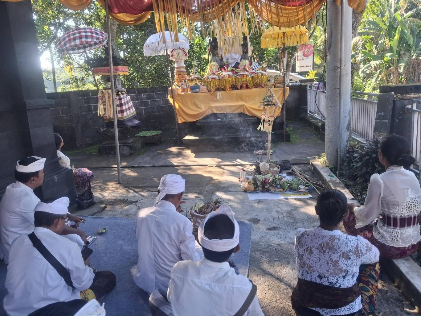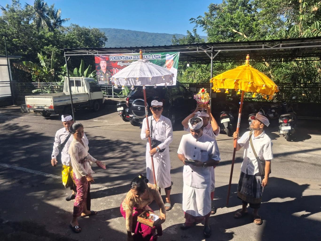 Kegiatan yang dimulai sejak pagi hari ini diikuti oleh Perbekel Panji Anom, perangkat desa, dan Pengurus BUMdes Karya Bakti Pertiwi. Suasana khidmat menyelimuti halaman kantor desa saat seluruh peserta yang mengenakan pakaian adat madya mulai melantunkan doa-doa pemujaan kehadapan Dewi Saraswati sebagai manifestasi Ida Sang Hyang Widhi Wasa dalam bentuk ilmu pengetahuan.