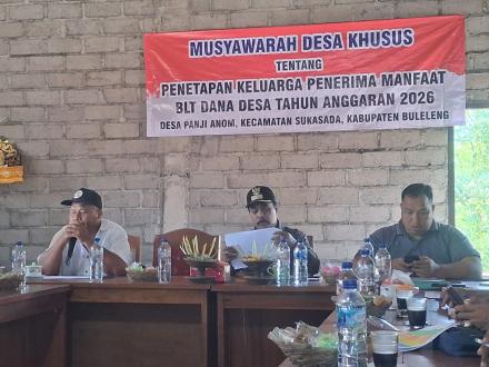 Kegiatan yang berlangsung di Kantor Perbekel Desa Panji Anom ini fokus pada agenda tunggal, yakni Penetapan Keluarga Penerima Manfaat (KPM) Bantuan Langsung Tunai (BLT) Dana Desa Tahun Anggaran 2026.